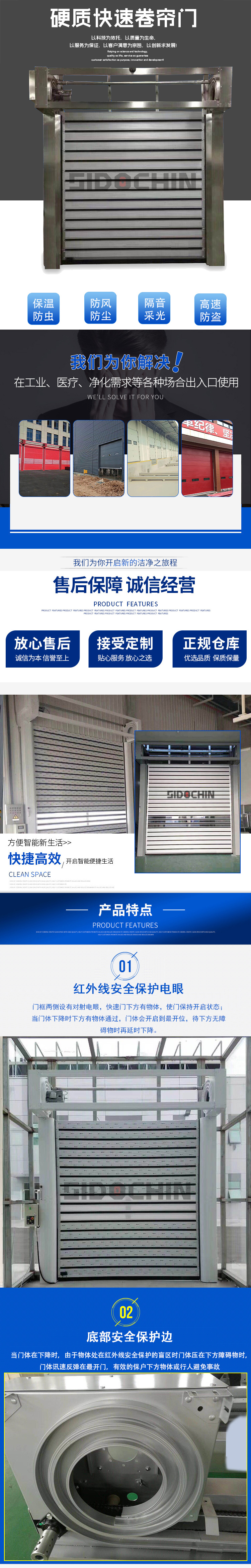 硬質(zhì)卷簾門是將柔性快速卷簾門和工業(yè)提升門合二為一的一款[敏感詞]工業(yè)用門,它既有柔性快速卷簾門的快速頻繁開啟、安全保護(hù)和多種控制形式,也有消防提升門的堅(jiān)固防盜和較好的抗風(fēng)壓性能。?